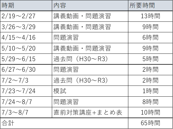 そのため、他の科目と同様、合格点である60点を目指して、1次試験で活用したスタディングの講義動画と問題演習の繰り返しにより頻出箇所を重点的に学習しました。また、直前期には前回のブログでご紹介した「まとめ表」を作成しながら記憶の再整理を行いました。