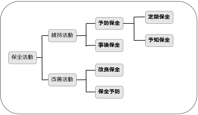 予防保全…設備の故障を未然に防止する方法の保全活動。