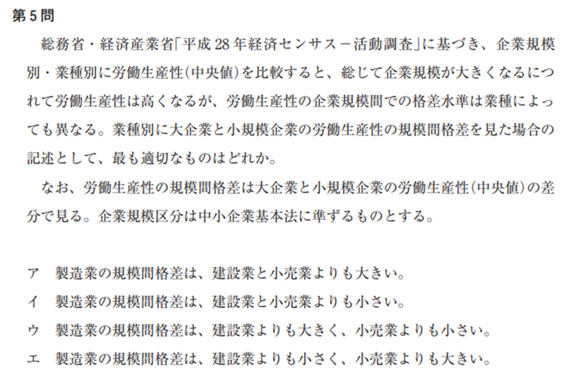 イ・・・製造業は建設業より小さいけど、その次点だからこれも不正解だ