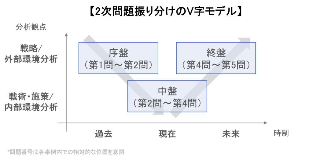 過去問を解く中で、問題毎に必要な分析観点と、着眼すべき時制のパターンがあるのではないかと感じ、図で示したものです。