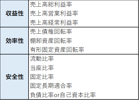 おさえるべき指標は、次の表の通りになります。