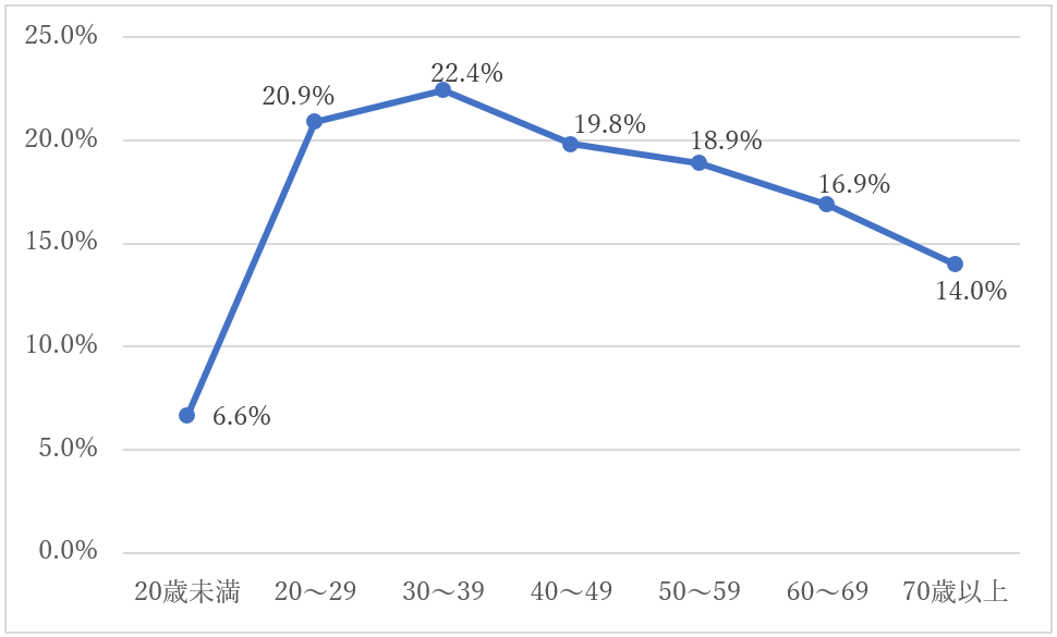 ●図6:令和4年度1次試験の申込者に対する年代別の合格率