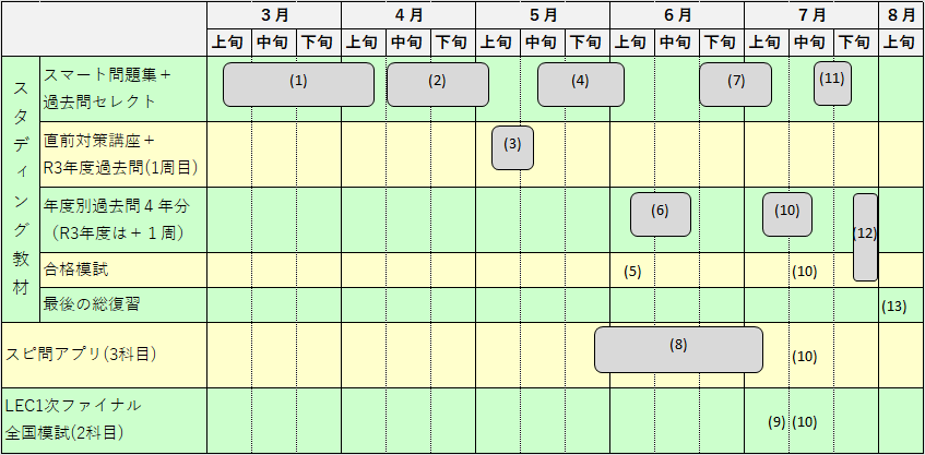 - (4)スマート問題集・過去問セレクト(全7科目)3周目(5月15日~6月3日)