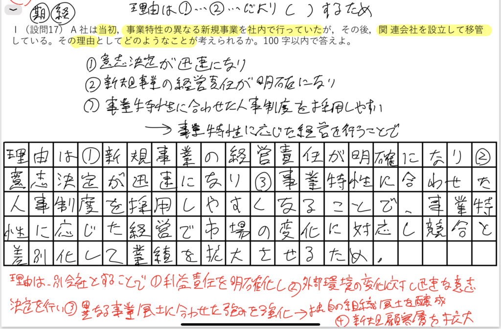 参考に、私の事例Ⅳ解答内容の骨子を再現すると、こんな感じでした。