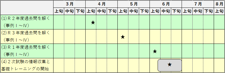 - (3)過去問10年分演習(事例Ⅰ~Ⅳ)1周目