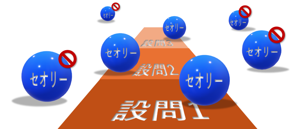 道は他にもたくさんありますし様々なセオリーもありますが、この道を選んだのであれば、次の設問で🚫マークのセオリーを持ち出してしまうと、自分の論理構成には合わなくなってしまうということです。
