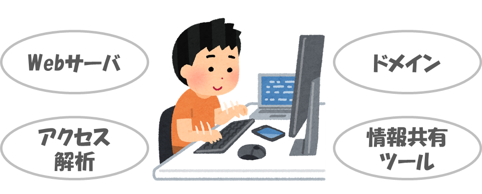 IT班はタキプロの活動を裏で支えるチームです。タキプロのWebサーバやドメイン、情報共有ツール(Dropbox、Facebook、Twitter、Zoomなど)の管理を行います。