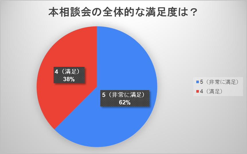 全員が「満足」「非常に満足」といった評価をしていただきました。
