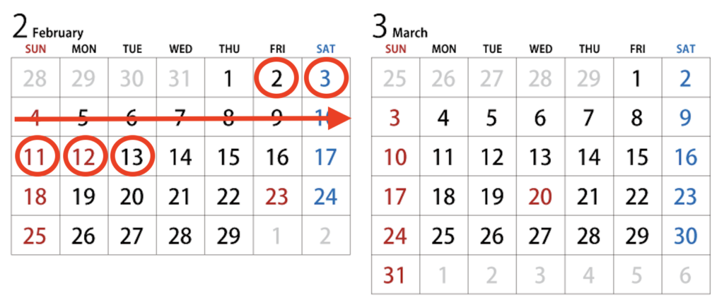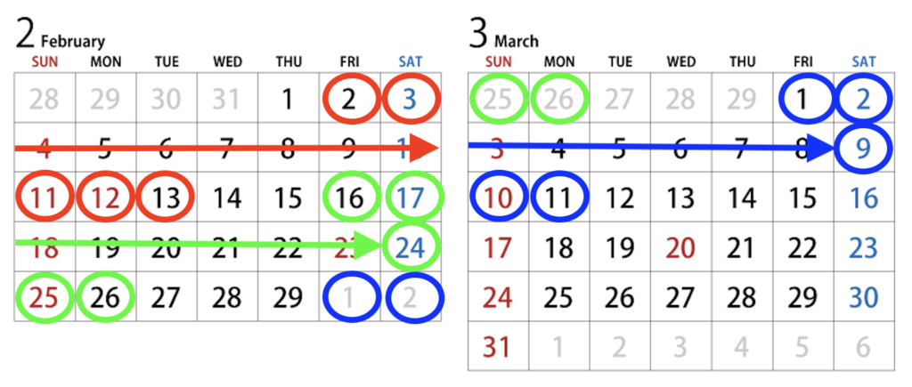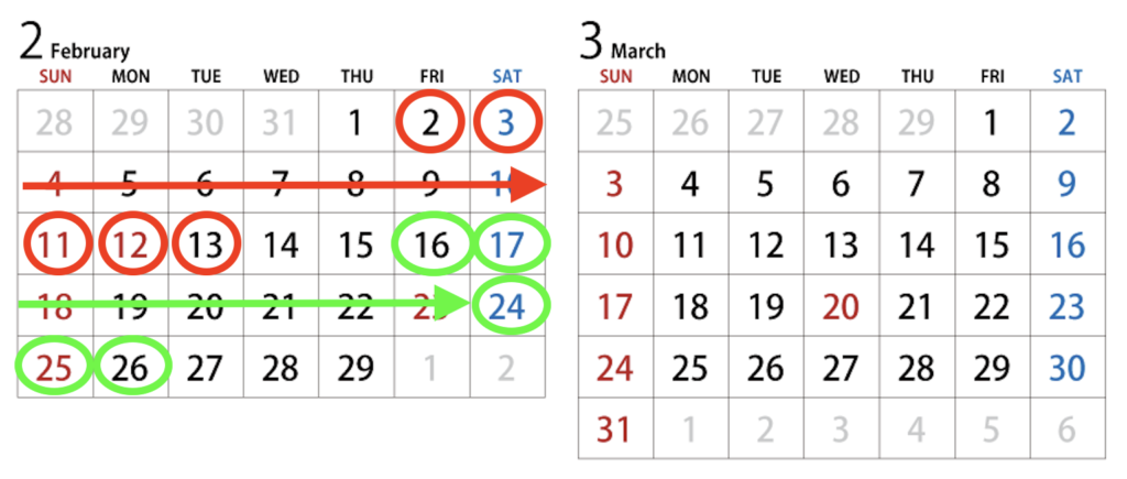 最初のA日程は、2月2日(金)から、3日(土)、11日(日)、12日(月・振替休日)・13日(火)です。