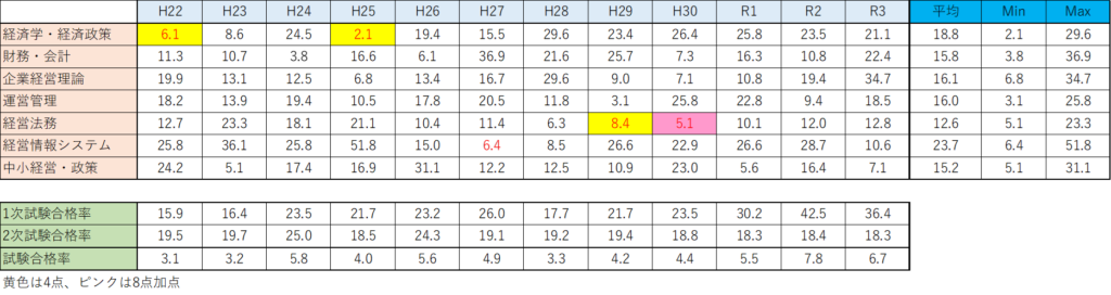 ここ最近の診断士合格率(%)を纏めましたので、下図をご参照下さい!