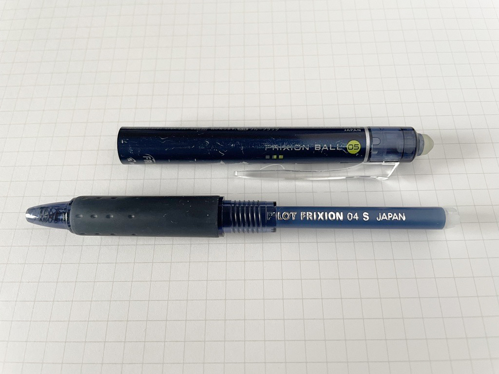 0.5mmの「フリクションボールノック05」のペン軸をレギュラーとし、そこに0.4mmの替芯を入れて使っていました。