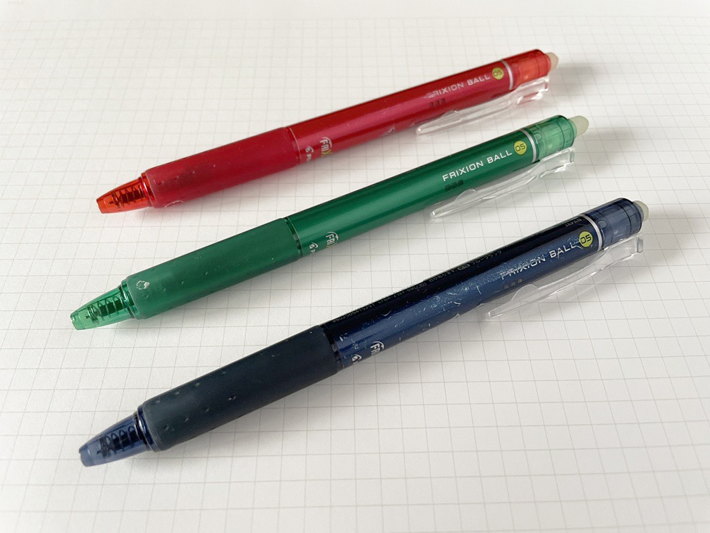 私はとにかく書きまくって記憶するタイプでしたので、テキストに書き込む、ノートにまとめ直すなど、勉強するときは「フリクション」を愛用していました。ゲル系のインキでするする書けますし、やっぱり消せるボールペンって素晴らしい!
