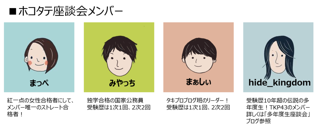 その代わり、勉強会やセミナーのアンケート結果を確認して、受験生の悩みを用意してきました。ホコタテで議論を交わした我々が皆さんの悩みにお答えしていきましょう!