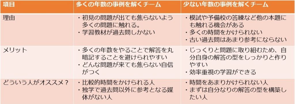 ■【後攻】少ない年数の過去問で復習に時間をかけるチームの主張