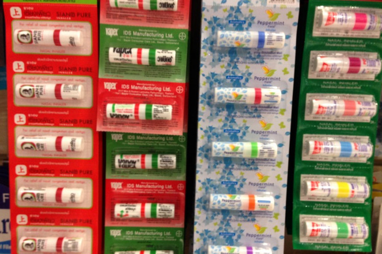タイの嗅ぎ薬、ヤードムはメンソール系ですっきりします。リラックスするために、試験開始前にこっそり鼻に突っこんでいました(たぶん怪しい人になっていたと思います)。みんながやってくれれば、堂々と鼻に突っこめるのですが、まだマイナーな存在なので、、。