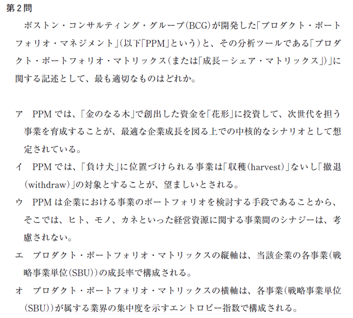 「ウ PPM は企業における事業のポートフォリオを検討する手段であることから、