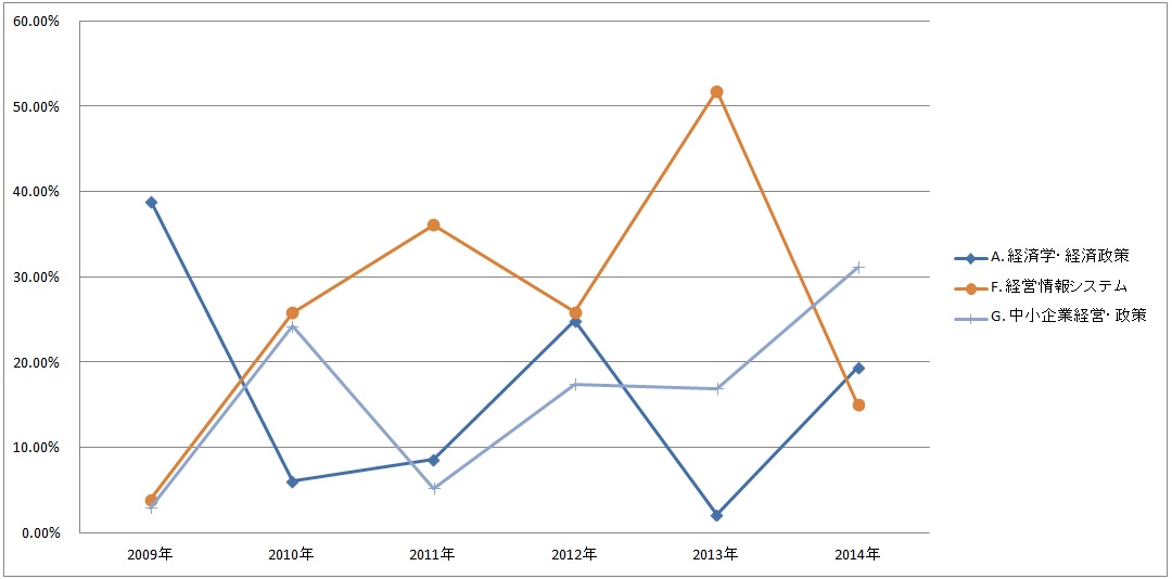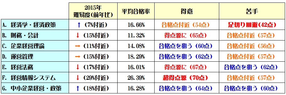 ですので、2015年度は、「経済学・経済政策」「中小企業経営・政策」は注意です。逆に「経営情報システム」は、得点しやすくなる可能性が高いです。