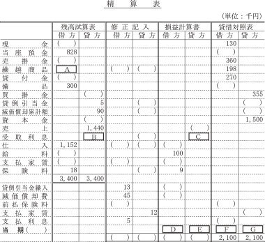 空欄D~Gのうち、金額が入る箇所として