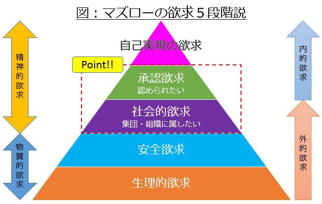 マズローの5段階欲求説にもありますが、「承認欲求」「社会的欲求」が、独学では満たされにくいと考えます。下の図を見てみましょう。
