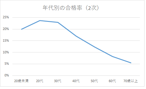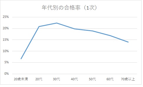 若い人も油断しないでくださいね。20代、30代は確かに中高年者よりは合格率は高いですが、決して余裕で受かる合格率とは言えない数値です。