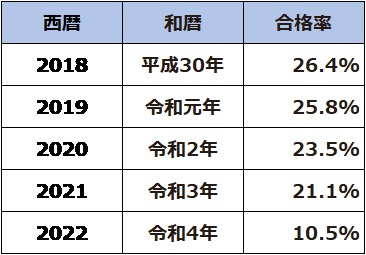 ↑の通り、おおむね20%台で推移していましたが、令和4年度は10.5%と難化しています・・・