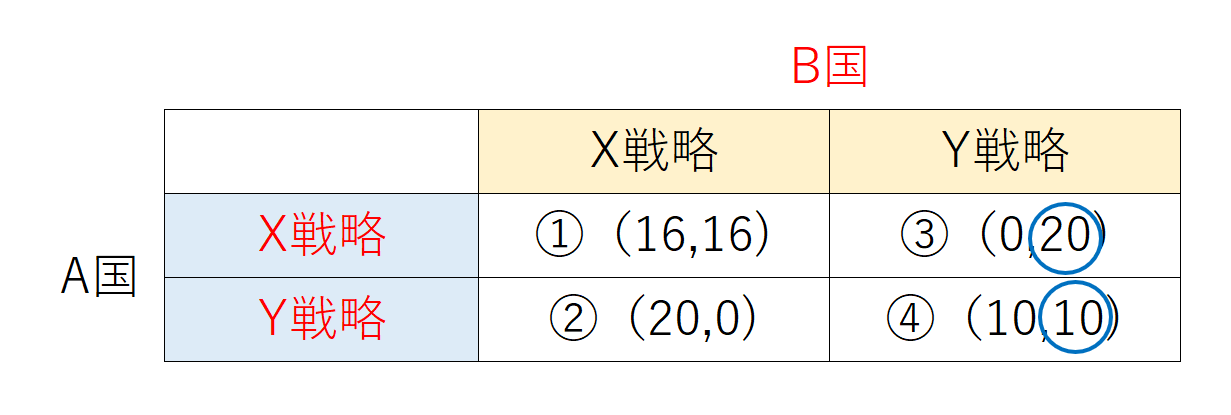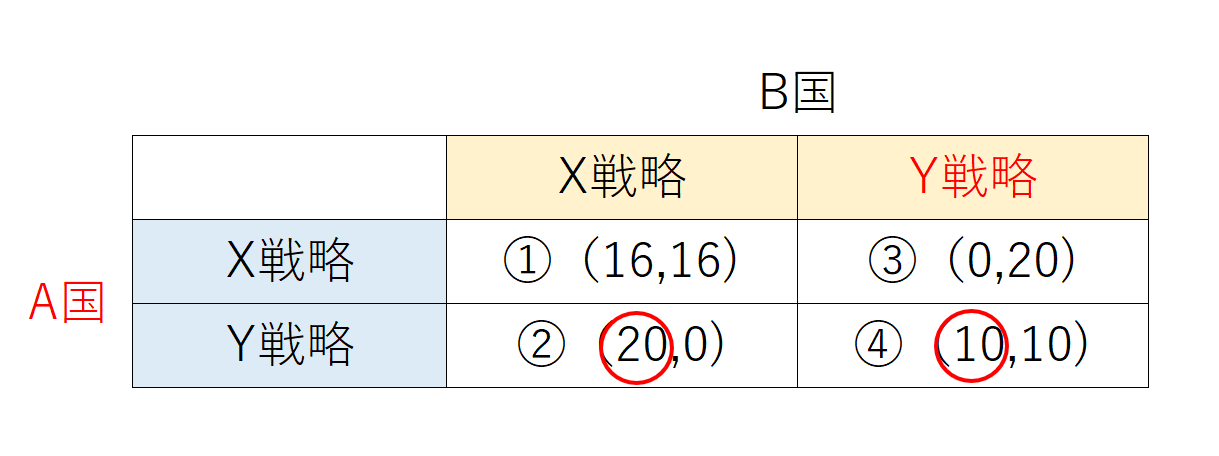 ここまでのA国・B国の戦略をまとめるとこうなります。