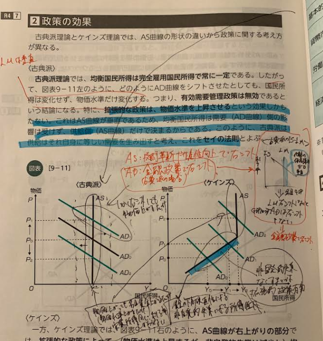 ↑私のテキストから抜粋(古典派理論とケインズ理論の違いについてのページ)