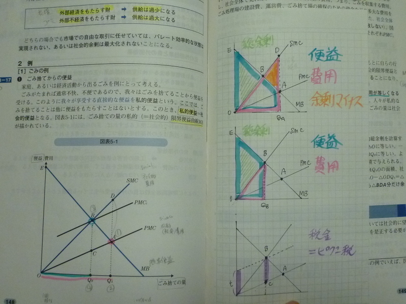 この色分けは、ミクロ経済、マクロ経済、グラフ、キーワードのマーク等、経済学のテキストにおいては、一貫して同じ色を使うようにします。