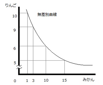 Aさんにとって「りんご10個、みかん1個」と「りんご9個、みかん3個」が同じ価値を持つ、ということになります。