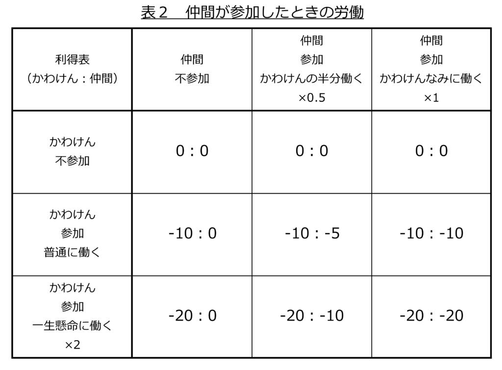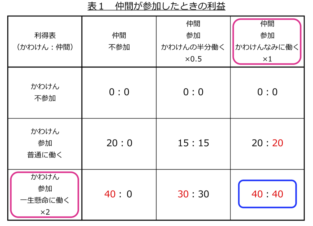かわけん:ナッシュ均衡だから。ほら、この表見て!