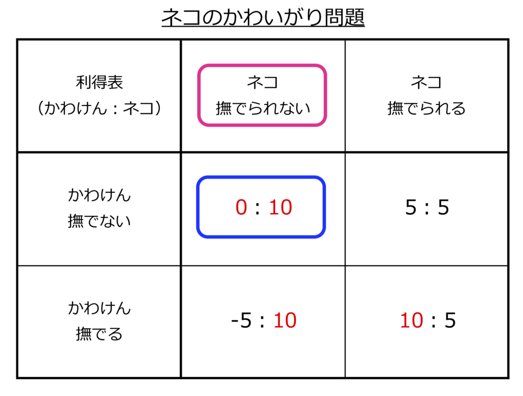 「ネコは人の合理性を持っているので、ゲーム理論に従って、撫でないほうがいい」