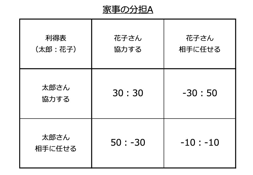 こんな風に、これから小遣いが欲しい時はこの表を目の前に突きつけて、ナッシュ均衡だからくれ、と言うようにしましょう。これで無限にお小遣いを得る理論を手に入れましたね。