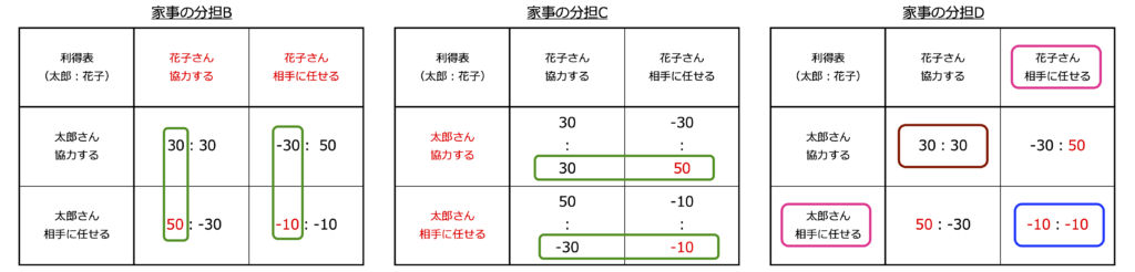 ・支配戦略:相手がどの戦略をとっても、自分が常にとるべき最適反応の戦略