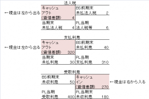 なお、説明の便宜上、利息および配当金の受取額」はキャッシュイン、「法人税等の支払額」と「利息の支払額」はキャッシュアウトに書き換えています。