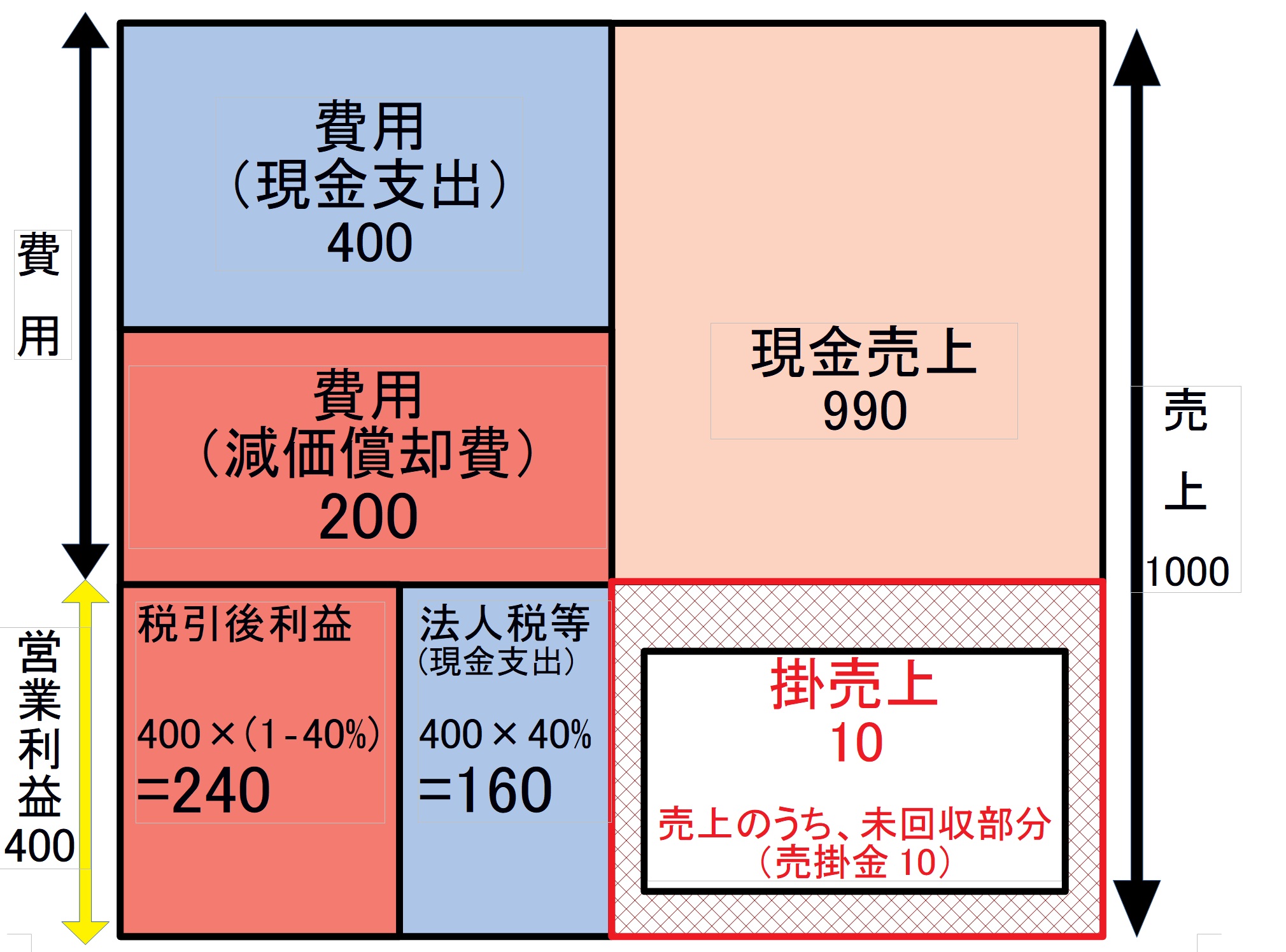 当期に売上で獲得したキャッシュは1000ではなく990です。