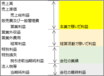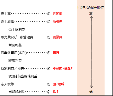 損益計算書にはビジネスの優先順位が書かれています。また、あたり前のことですが上から順に数字が大きければ絶対黒字になります。