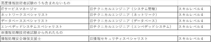 一方、現在実施されている高度試験(スキルレベル4)で「免除」対象に含まれないのは次の通りです。