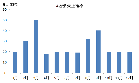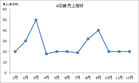 3月が顕著に売り上げが伸びていることが分かります。例えば、