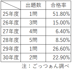 平成29年度が1問だけでしたので、たしかに増えはしましたが、