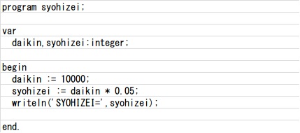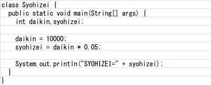 10000円の代金の消費税を算出して表示するプログラムとしています。