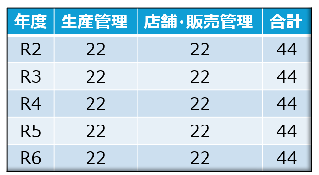 店舗・販売管理は買い物などで小売店を利用するケースもあり、比較的馴染みやすいかと思います。しかし、生産管理は工場などと関わりがなければ、イメージをしにくいです。では、生産管理と店舗・販売管理の出題傾向を図表1で示します。これがきれいに半々となっています。どちらに重点をおくということは避けて、満遍なく学習する必要があると言えます。