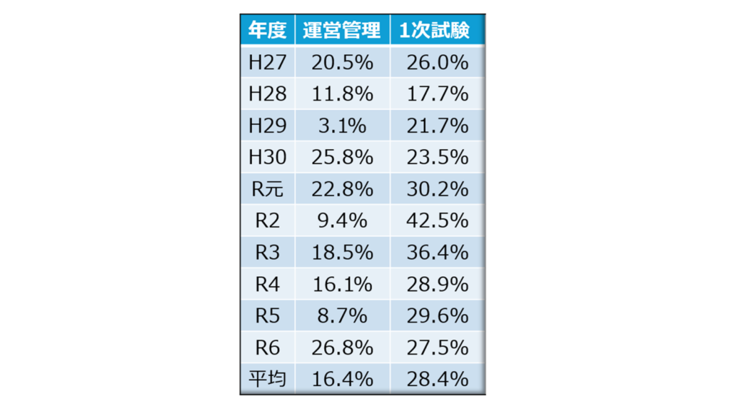 そのため、学習としては細部にこだわり過ぎないことが重要です。過去問で難解な問題を理解することにこだわると、時間的にもリスクがあります。試験本番においても、難問は時間をかけずに余裕があれば、解くのもひとつの方法です。ある程度の割り切りが必要で、受験した運営管理の難易度が高ければ、他科目で挽回するというマインドが必要になることもあります。なお、科目合格には1次試験合格者は含まれていないことをご留意ください。