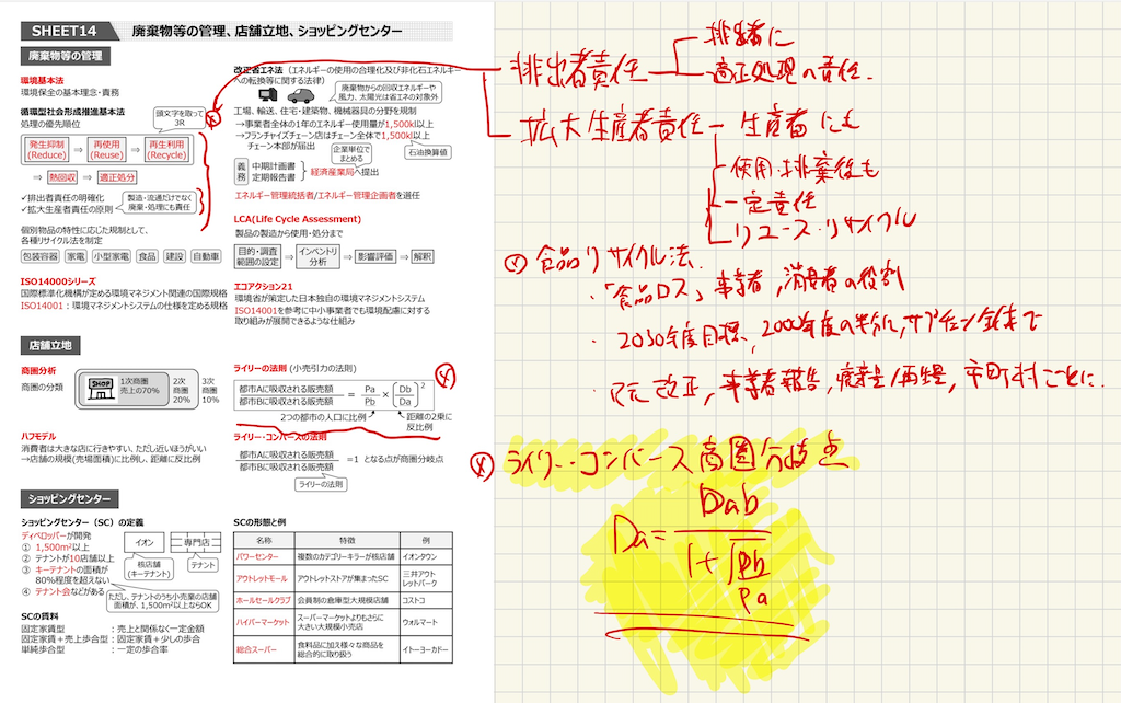 ただ私の場合、前後の文脈を含んだわかりやすいノートを書くのが苦手だったため、「一発合格まとめシート」(https://www.matome-sheet.com/)の購入特典のPDFを利用し、その記載箇所にまとめて弱点箇所をメモしていきました。