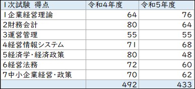 1次試験の結果はこのような感じです。令和5年度は、保険受験でしたので試験前1週間で記憶を取り戻していました