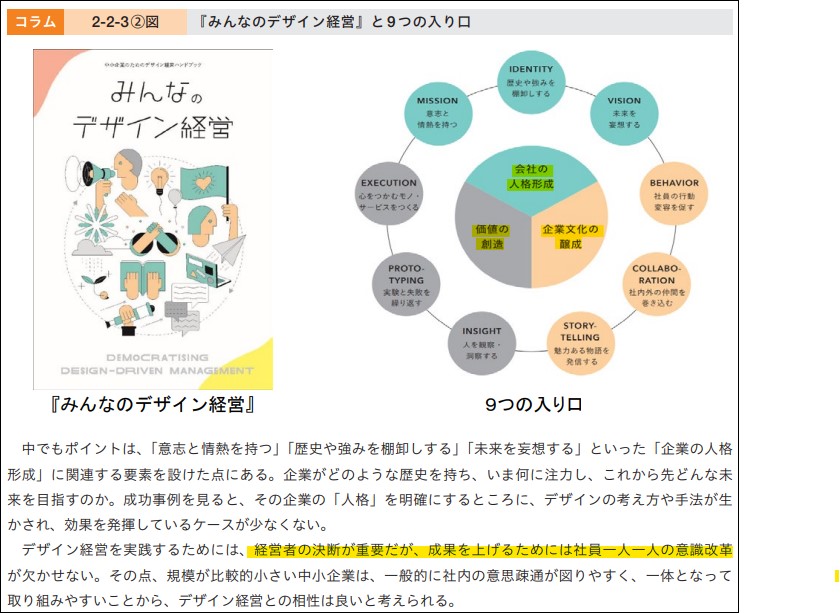 ~略~ 『中小企業のためのデザイン経営ハンドブック みんなのデザイン経営』を2021年に取りまとめた。