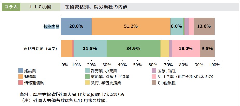 ~中略~ 技能実習では( )、資格外活動(留学)では( )の割合が最も高くなっている