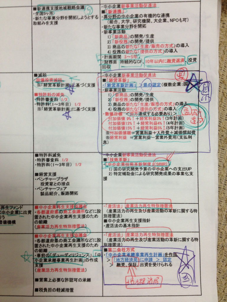 「新事業活動促進法」「産活法」「農商工連携促進法」「中小ものづくり高度化法」「経営承継円滑化法」「下請代金支払遅延等防止法」「マル経融資」「共済制度(退職金)」「経営セーフティ共済」・・・