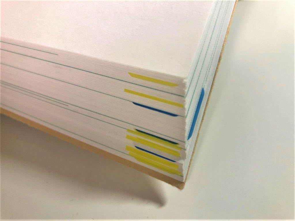 またテキストにページ上部には、重要なポイントがすぐに確認できるよう色分けして付箋を貼りました。