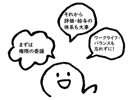 け(権限移譲)、ぶ(部門)、かい(階層)、ね(ネットワーク)、こ(コミュニケーション)