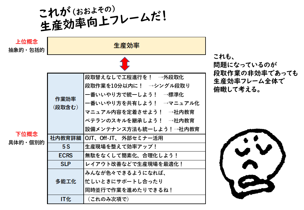 そんな「アイデア解答」を回避し、収まるべきところに解答を収める、それがフレームワークの役割のその1です。